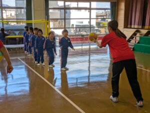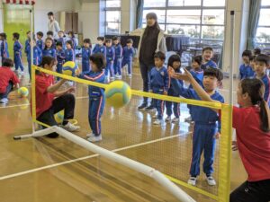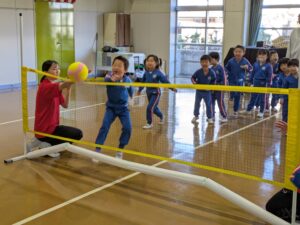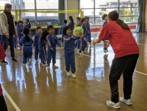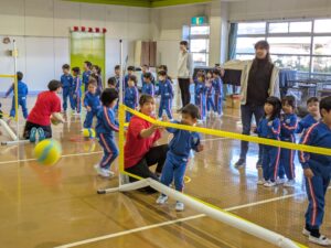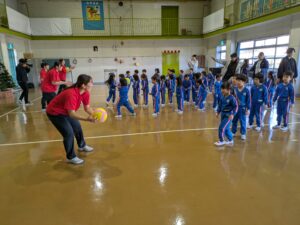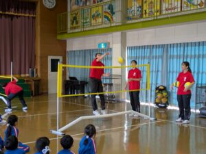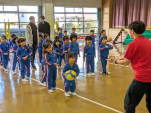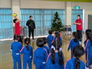 Ligare Sendaiの選手の方に来園して頂き、年中さんと年長さんがバレーボールを教えて頂きました。