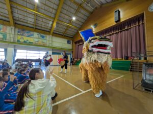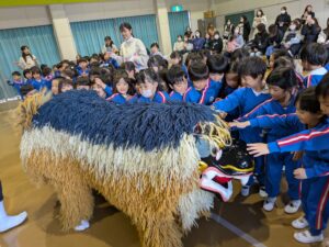 最後は獅子のししまさ君も出てきてくれました!噛んでもらうと幸せになれると聞いて、恐る恐る近づていく子もいましたよ。