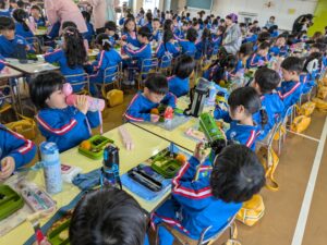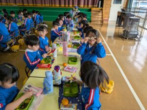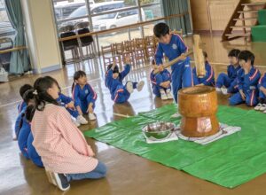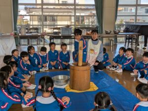お米がお餅になっていく様子をみながら、早く食べたいな~と待ちきれない子どもたちでした。先生も頑張ってつきましたよ。