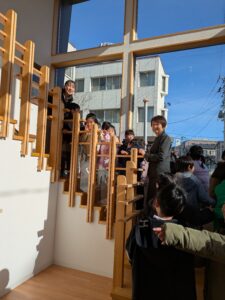 中に入ると「木のにおいがする~」「たのしそう」
