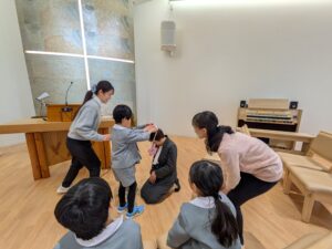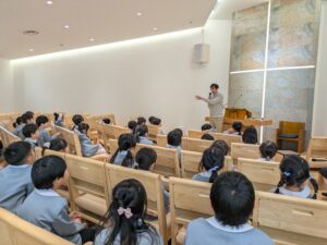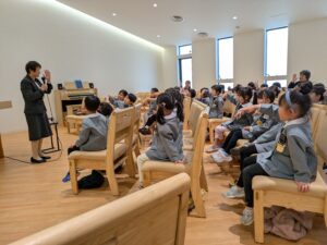 年長さん最後の合同礼拝。特別に南光沢教会で合同礼拝を行いました。