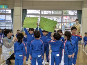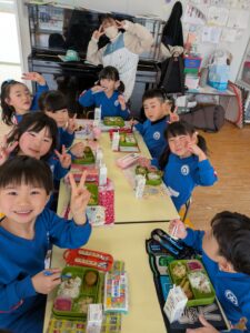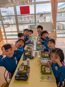 3月はお別れの季節ですね。幼稚園の一番大きいお兄さんお姉さんとして頑張ってくれていた年長さんとお別れ会をしました。