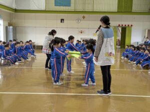 そして、修了式では年中・年少・プレ少の子どもたちにも『がんばったでしょう』が渡されました。