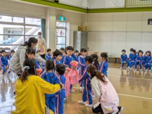 小さいクラスの子どもたちとのプレゼント交換。